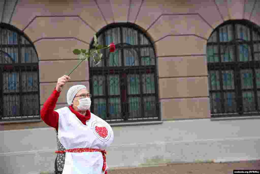 У здания вуза пенсионеры скандировали: "Бабушки за вас", "Студенты – наша гордость" и "Жыве Беларусь!" Студенты встретили пенсионеров криками благодарности и бело-красно-белыми флагами из окон, сообщает TUT.BY.