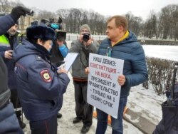 Одиночные пикеты на площади в центре Петербурга проходили в знак протеста против изменения Конституции России.