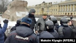 В Санкт-Петербурге на Сенатской площади во время одиночных пикетов прошли задержания. Первым полицейские задержали одного из участников акции, Вадима Казака, когда он отказался подписать предупреждение о правилах проведения публичного мероприятия, сообщает "ОВД-Инфо".